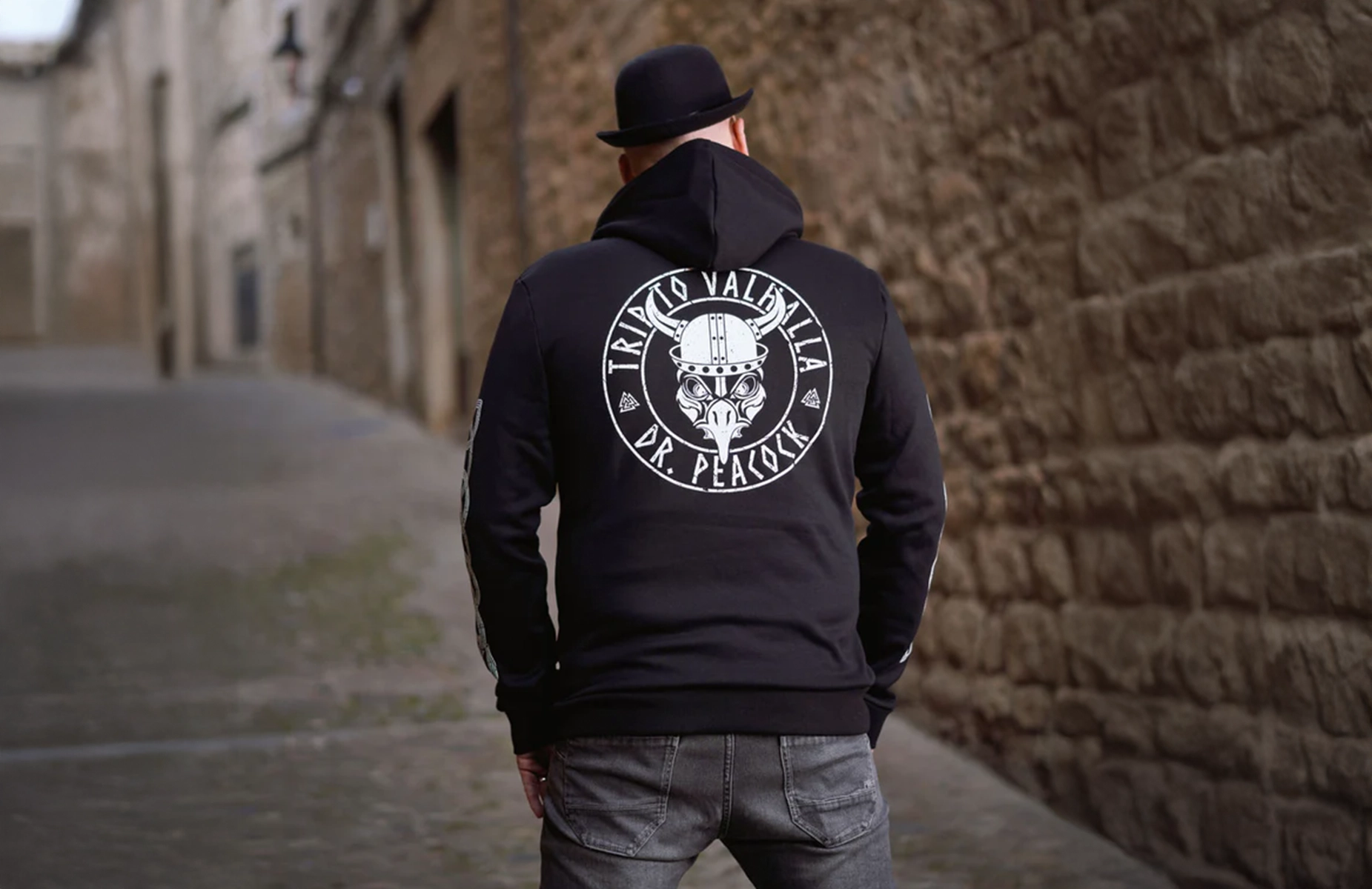 Voor Dr. Peacock, de Nederlandse DJ en muziekproducent, ontwierp ik meerdere merchandise-collecties: van de psychedelische Trippy Collection tot een lijn geïnspireerd op zijn hit “Trip To Valhalla.” Elk ontwerp vertaalt de energie en sfeer van zijn muziek naar visueel krachtige kleding die fans echt raakt.